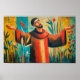 Cette affiche représente Saint François d'Assise à bras ouverts, entourée de fleurs et d'oiseaux. Connu pour son amour de la nature et sa dévotion à Dieu, François nous invitation à voir la création comme un don. Image brillante et inspirante pour les maisons, les églises ou les salles de classe, elle encourage la foi, la joie et l'attention pour le monde qui nous entoure.