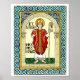 This is a reproduction of an original painting by A.R. Danziger depicting Saint Ninian in the style of Celtic illuminated manuscripts. St. Ninian was known as the first Apostle to the Scotland and preached the gospel to the Southern Picts before his death in 432 A.D. He founded a church and monastery at Whithorn. He is shown standing in the archway of Whithorn Priory holding the crozier of one of his medieval successors and with his bell the "Clogrinny" which was used to summon monks to prayer. The cross on his gospel book is taken from the inscription on the Peter Stone at Whithorn.