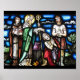 Vitrail vintage de Saint Patrick avec ses disciples donnant une bénédiction à un homme.
