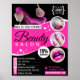 Flyer de salon de beauté noir et rose! Ce design accrocheur est fait sur mesure pour les professionnels de la beauté qui veulent faire une déclaration audacieuse et attirer une clientèle diversifiée. La combinaison frappante de noir et de rose crée un look élégant et moderne, donnant le ton d'une expérience de beauté haut de gamme. Que vous offriez des coupes de cheveux, de la coloration des cheveux, de l'art de l'ongle ou une gamme de services de beauté, ce modèle polyvalent vous aidera à vous démarquer dans l'industrie de la beauté compétitive. Téléchargez et customisez-le dès aujourd'hui !