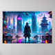 Affiche Samouraï solitaire dans la ville futuriste