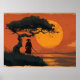 Affiche Samurai Under Sunset Tree in Traditional Japanese