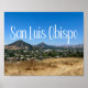 Beautiful San Luis Obispo photograph poster of the California city from the overlook at Terrace Hill during the summer. A great print of the mountains from this hiking spot in SLO.