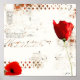 différentes nuances et des couches de blanc, avec un éclat de rouge vif en dessous, deux grands pavots rouges sortent de la pièce avec des mots d'orge lisibles dans l'arrière - plan