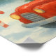 Affiche Santa Driving Red Car Watercolor Christmas