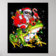 Affiche Santa Riding Frog Christmas Lights Funny Xmas Tree
