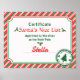 Affiche Santa's Nice List Certificate Red Green Candy Cane