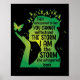 Cette conception de la santé mentale comporte une silhouette de femme avec papillon et ruban vert de santé mentale et dit : "Ils lui murmurent que vous ne pouvez pas résister à la tempête. Je suis la tempête qu'elle a chuchotée en retour