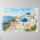 Affiche Santorini Greece Watercolor Blue Dome Church Art