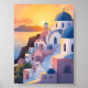 Santorini, Greece | Watercolor Coastline Sunset Poster Painting