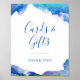 Panneau de table cadeau mariage imprimé sur mesure avec une bordure d'aquarelle bleue abstraite pour coordonner avec notre collection Sapphire Tide. Personnalisez-le avec votre propre texte personnalisé pour Cartes et Cadeaux. Utilisez les outils de conception pour modifier les polices et les couleurs ou télécharger vos propres photos pour créer un signe mariage unique.