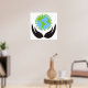 Sauvez la planète terre et mains Poster. Il met la Terre en vert et bleu avec le texte "Aimez-la, protégez-la, respectez-la, sauvez-la" autour de lui et des mains qui la tiennent avec soin.