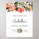 Cette pancarte de bienvenue pour la fête de mariage présente des pêches aquarelle, des fleurs blanches et une police de caractères script fantaisiste. Tout le texte est modifiable pour s'adapter à tous les besoins de l'événement - fête de naissance, fête de mariage, week-end de célibataire, etc.
