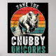 Affiche Save The Chubby Unicorns Funny Retro Rhino Animal