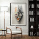 Une composition saisissante de cuillères blanches surdimensionnées et remplies d'ingrédients colorés (tomates cerises, ail, lentilles, herbes et huile) disposées artistiquement sur un arrière - plan abstrait texturé de noir, blanc et orange. Cette peinture d'inspiration cuisine allie réalisme et abstraction pour célébrer la beauté des éléments de cuisine du quotidien.