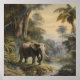 Affiche Scène botanique vintage éléphant par rivière jungl