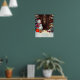 Utilisez cette adorable affiche de Noël dans votre décor de maison, de bureau ou d'affaires. L'affiche présente une scène d'un mignon bonhomme de neige avec des cadeaux à la porte d'entrée d'une maison en vintage aquarelle.