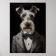 Affiche Schnauzer Portrait de chien Gray Suit Bow Cravate