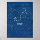 Un poster représentant la constellation de Scorpio dans le ciel nocturne avec un arrière - plan de lavage à l'eau indigo. Affiche amusante pour vous ou pour donner à un ami Scorpio. Vous pouvez trouver les autres constellations d'étoiles sur une variété d'articles dans ma boutique.