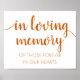 Neutre automne poussiéreux orangé et blanc horizontal "En mémoire d'amour" douche, fête, ou panneau de table commémorative de réception avec un script amusant, décontracté écrit à la main. Le design classique comprend une superposition de la typographie de citation à la main moderne. La belle police avec une couleur arrière - plan personnalisable permet de s'adapter facilement à n'importe quel thème. Pour d'autres couleurs ou produits correspondants, veuillez visiter le magasin JustFharryn Zazzle, ou contacter le concepteur, c/o fharryn@yahoo.com Tous droits réservés. #zazzlemade
