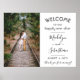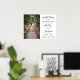 Accueillez vos invités de mariage à votre cérémonie ou réception avec un élégant poster photo personnalisé 18"x24". L'image et tout le texte sont faciles à personnaliser. (CONSEIL DE PLACEMENT DE L'IMAGE : un moyen simple de centrer une photo exactement comme vous le souhaitez est de la rogner avant de la télécharger sur le site Web de Zazzle.) Le design moderne minimaliste noir et blanc présente une image de votre choix, une calligraphie de style manuscrit chic, une typographie vintage inspirée de l'Art déco et des messages personnalisables qui disent "bienvenue dans notre bonheur éternel" et "merci d'être venus". Ce panneau de bienvenue de mariage est un moyen élégant de partager une photo de fiançailles tout en ajoutant une touche personnelle aux décorations de votre célébration de jour spécial. Félicitations aux mariés !
