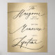Élégant Script De Calligraphie Noire Sur Faux Gold Foil Le Hangover Seulement Dernier Par Jour, Mais Les Souvenirs Dernier Une Réception De Mariage À Vie Open Bar Signer. Conçu par fat*fa*tin. Facile à customiser avec votre propre texte, photo ou image. Pour des demandes personnalisées, veuillez contacter fat*fa*tin directement. Des frais personnalisés s'appliquent. www.zazzle.com/fat_fa_tin www.zazzle.com/color_therapy www.zazzle.com/fatfatin_blue_knot www.zazzle.com/fatfatin_red_knot www.zazzle.com/fatfatin_mini_me www.zazzle.com/fatfatin_box www.zazzle.com/fatfatin_design www.zazzle.com/fatfatin_ink