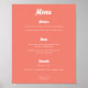 Affiche Script de corail rose moderne Mariage Menu Sign