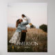 Un morceau d'art mural simple et moderne, personnalisable, pour une photo de famille, et votre nom de famille en bas.