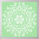 Ce mandala blanc est assis sur un arrière - plan vert tendre. Les couleurs sont sereines et créatives. Partie de la collection Losonieth Mandala.
