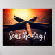 Seas the day beautiful starfish sunset beach photo Poster. Personalize with your own inspirational quote optionally. Stylish wall decor for beach home or vacation house near the ocean. Starfish on beach sand reflecting the summer sun.
