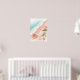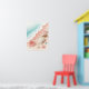 Beautiful aerial view of seashells and starfish on pink sandy beach with aqua waves. Charming coastal watercolor perfect for beach house, bathroom, nursery, or bringing beach vibes indoors.