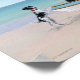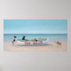 Reproduction d'une peinture originale de Carol Saxe représentant des Chiens sur une plage océanique et un bateau à secourt de surf