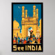 A Traditional bazaar takes the focus in this vintage adverting for traveling India. Test Reads: See India.