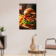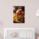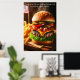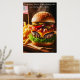 Faites l'expérience d'une sensation de burger étoilé avec ce délicieux gâteau. Une pâtisserie de boeuf juteuse, grillée à la perfection juteuse, est garnie de fromage cheddar fondu, de bacon croustillant, de laitue fraîche, de tomates vibrantes et de cornichons acidulés. Le tout niché à l'intérieur d'un pain grillé de graines de sésame et servi avec une portion généreuse de frites dorées et croustillantes. Un petit drapeau américain orne fièrement l'assiette, ce qui en fait un régal patriotique et délicieux.