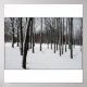 Un stand d'arbres nus surveille le terrain, recouvert de neige.