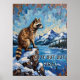 Ce tableau évocateur présente un raton laveur comme une figure solitaire, assis sur un rocher saupoudré de neige surplombant un lac tranquille et partiellement gelé sous une pleine lune lumineuse. Des montagnes enneigées forment un arrière-plan majestueux et des pins dispersés ajoutent à l'ambiance hivernale. Les coups de pinceau épais et texturés donnent à la scène une qualité riche et picturale. La phrase "Mignon mais sauvage" est écrite dans une police stylisée en bas, laissant entrevoir la nature sauvage de l'animal sur fond de paysage serein.
