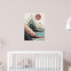 Geometric mountain landscape design combines clean lines and abstract shapes to create a modern, minimalist work of art. Inspired by the natural beauty of mountains, sunshine, and lakes, this artwork features a sophisticated earth color palette including warm terracotta, sage green, soft beige, and deep dark tones.