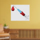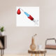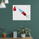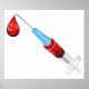 Une seringue de sang avec une goutte de sang rouge au bout. Ce design a l'air vraiment efficace sur ces affiches