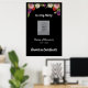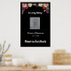 L'affiche commémorative pour les funérailles ou la célébration de la vie a une bordure fleurie et les phrases de script "In Loving Memory" et "Forever in Our Hearts". Modifiez le texte au besoin et changez l'espace réservé de la photo pour une photo de la personne honorée. L'arrière - plan noir peut également être changé en une autre couleur si vous le souhaitez. L'affiche peut être montée sur une planche et placée sur un chevalet à l'événement, ou accrochée sur un mur ou une porte.