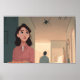 The composition draws the eye upward, emphasizing the looming shapes above her and the drama of perspective. Smooth gradients and bold forms heighten the tension, creating a minimalist, modern aesthetic. As a poster, it captures both cinematic suspense and quiet elegance, transforming a moment of dread into artful storytelling.