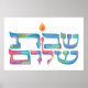 Des lettres hébraïques peintes à la main et artsy, les mots colorés disent "Shabbat Shalom."