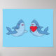 Kawaii style artwork of two shark friends, one holding a heart, is sweet and cute for your child or baby's room! Works great as nursery decor too!