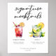Cette affiche chic signature mocktails propose une typographie noire personnalisée au-dessus de 2 boissons non alcoolisées et leurs ingrédients pour votre bar mariage. Un joli temple de Shirley et un dessin de Mojito vierge ajoutent une touche cool à votre menu de bar. Complétez avec les noms du couple et la date de leur réception.