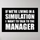 Si nous vivons dans une simulation, je veux parler au gestionnaire. Ce drôle de design de théorie de simulation est un grand cadeau de Noël ou d'anniversaire pour quelqu'un qui croit que la réalité est simulée. L'année 2020 est glacée, et Karen veut parler au directeur. Si vous croyez en l'hypothèse de la simulation et pensez que l'univers et la terre sont une simulation numérique et artificielle qui est pleine de pépins, et pas très bien couru, cet accessoire sarcastique amusant est pour vous!