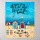 Une scène de plage aux couleurs vives avec une citation liée à la plage.