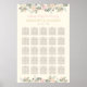 Le plan d'affiche du tableau de sièges mariage de style Boho comporte du texte personnalisé pour vingt-cinq (25) tables pouvant être personnalisées pour votre événement. Des fleurs romantiques, des feuilles botaniques et des plumes rustiques encadrent le design. Les tons vintages et doux sont le rose pastel, la pêche, la crème, le vert, le gris et l'or. On peut customiser la couleur arrière - plan légère imprimée en ivoire.