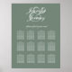 Ce tableau moderne de sièges verts à la sauge comporte un script de calligraphie blanche avec le nom de la mariée et du marié et les noms des invités à personnaliser. Convient à 12 tables. Conçu par Susan Coffey.