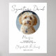 Ce panneau de signature de script minimaliste noir et blanc peut être personnalisé avec votre photo d'animal de compagnie et des informations en typographie chic. Conçu par Thisisnotme©