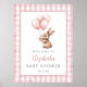 Ce charmant signe de bienvenue pour baby shower présente un adorable bébé lapin tenant des ballons et un fond à carreaux rose, et peut être personnalisé avec votre nom et date spéciale. Conçu par Thisisnotme©