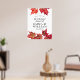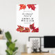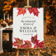 Donnez le ton à votre célébration automnale avec ce superbe Signe de bienvenue pour le dîner de répétition des feuilles d'automne rouges. Un feuillage aquarelle riche cramoisi et orange brûlé encadre votre texte personnalisé, créant une entrée chaleureuse et accueillante pour vos invités.